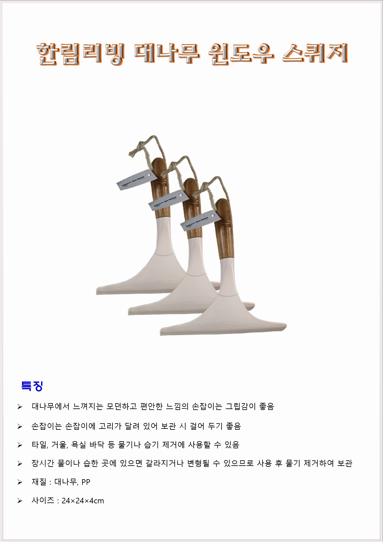 청소도구 핸드스퀴지 한림리빙 대나무 윈도우 스퀴지 24×24×4cm