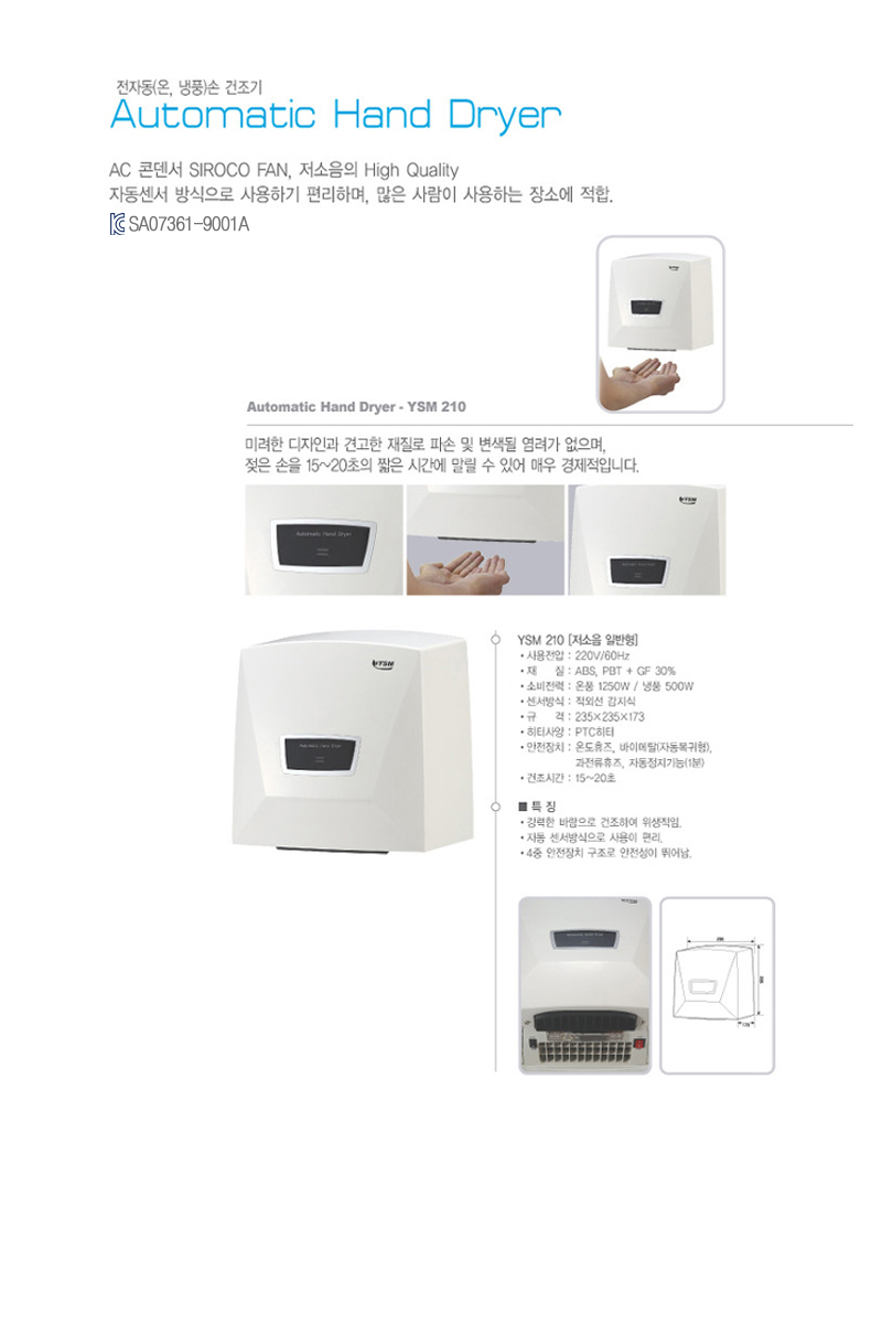 유성산업 YSM-210 자동손건조기 235×235×173mm