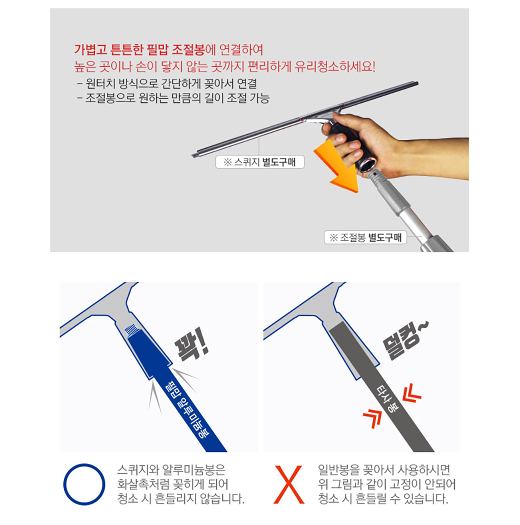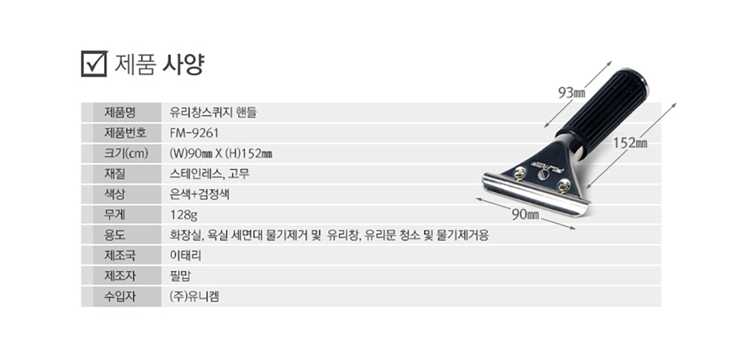 청소도구 유리창청소 필맙 유리스퀴지 핸들 90×152mm