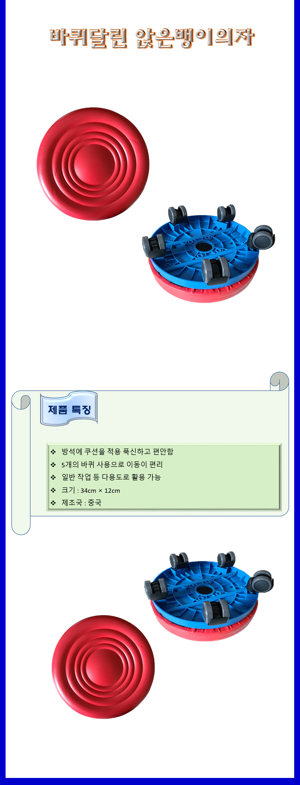 청소도구 작업도구 의자 바퀴달린 앉은뱅이 의자 34×12cm