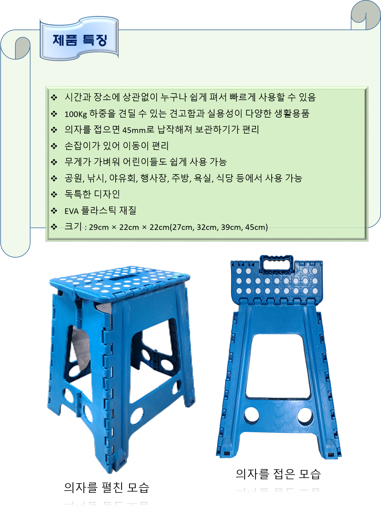 청소도구 작업도구 의자 다용도 접이식 의자 29×22×22cm