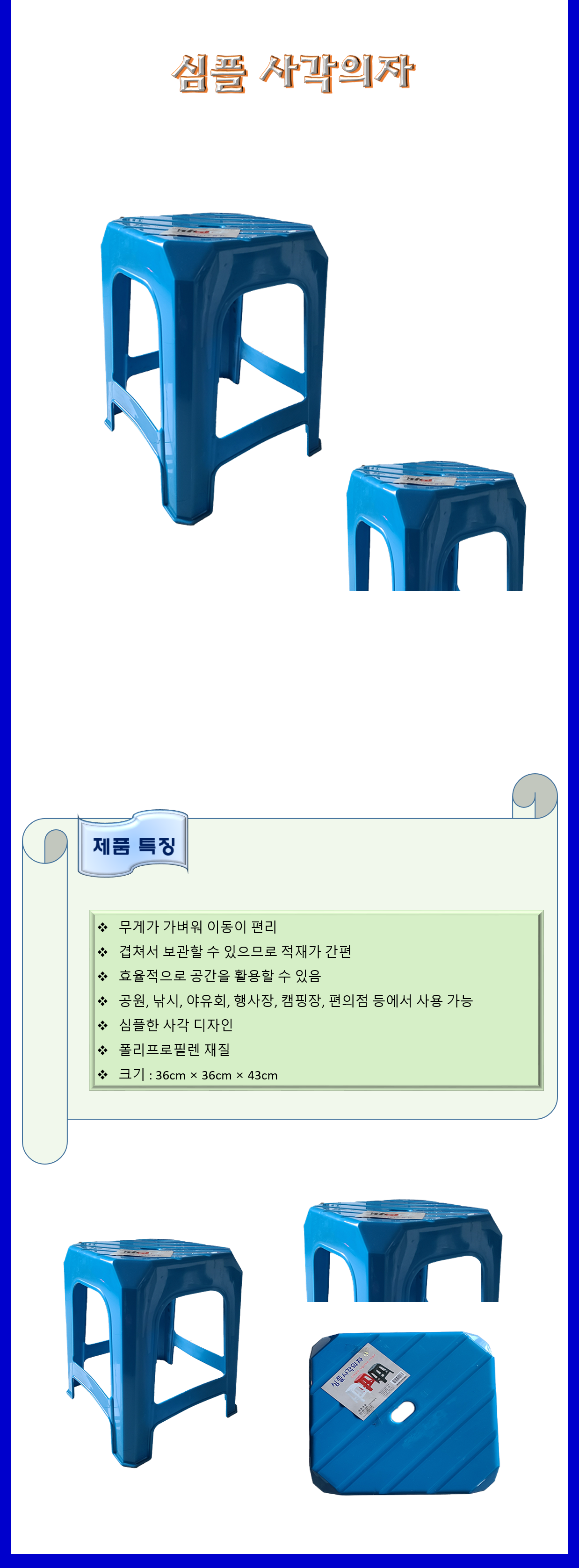 청소도구 작업도구 의자 심플 사각의자 36×36×43cm