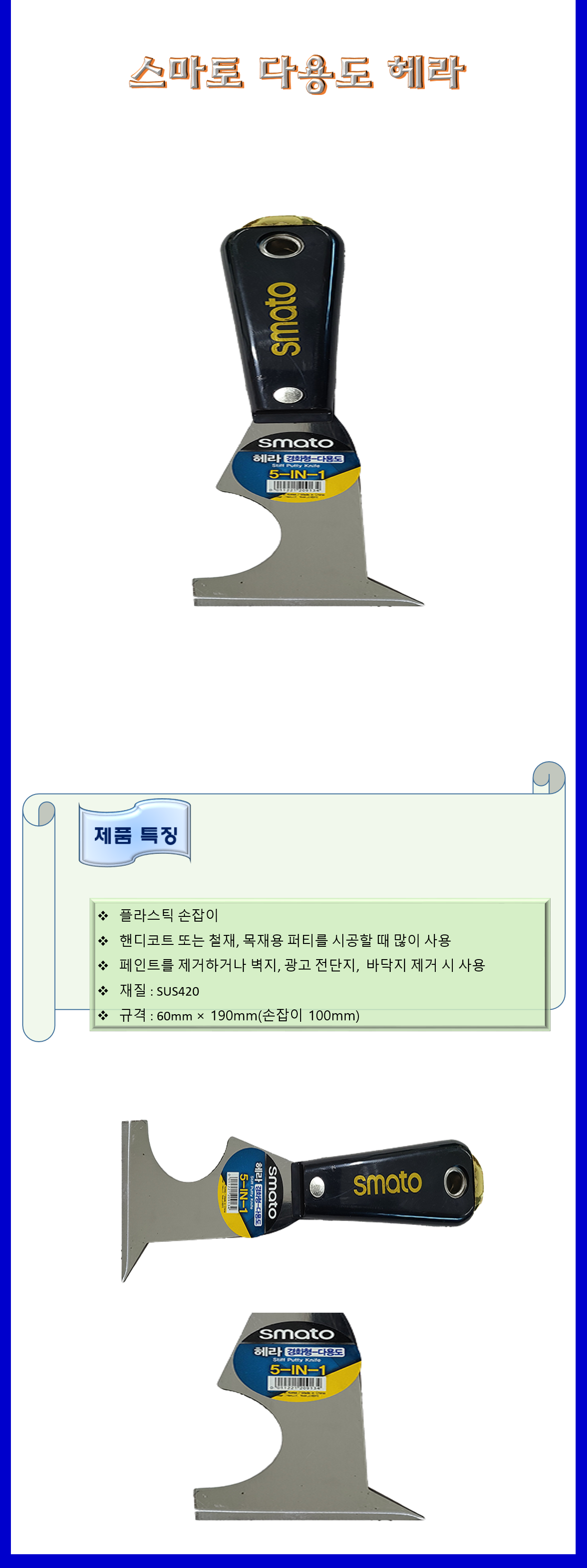 청소도구 작업도구 헤라 스크래퍼 스마토 다용도 헤라 60×190mm