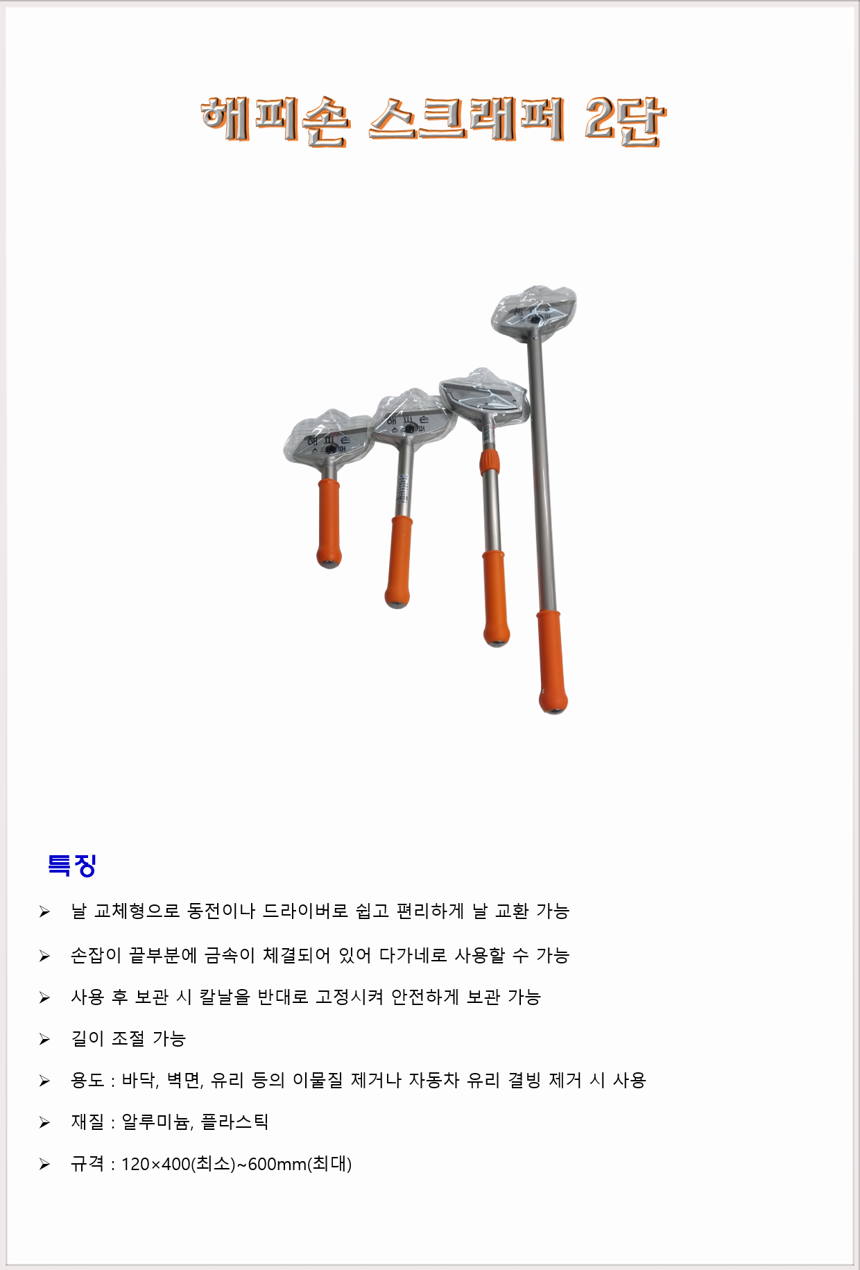 청소도구 작업도구 헤라 해피손 스크래퍼 2단 120×400~600mm
