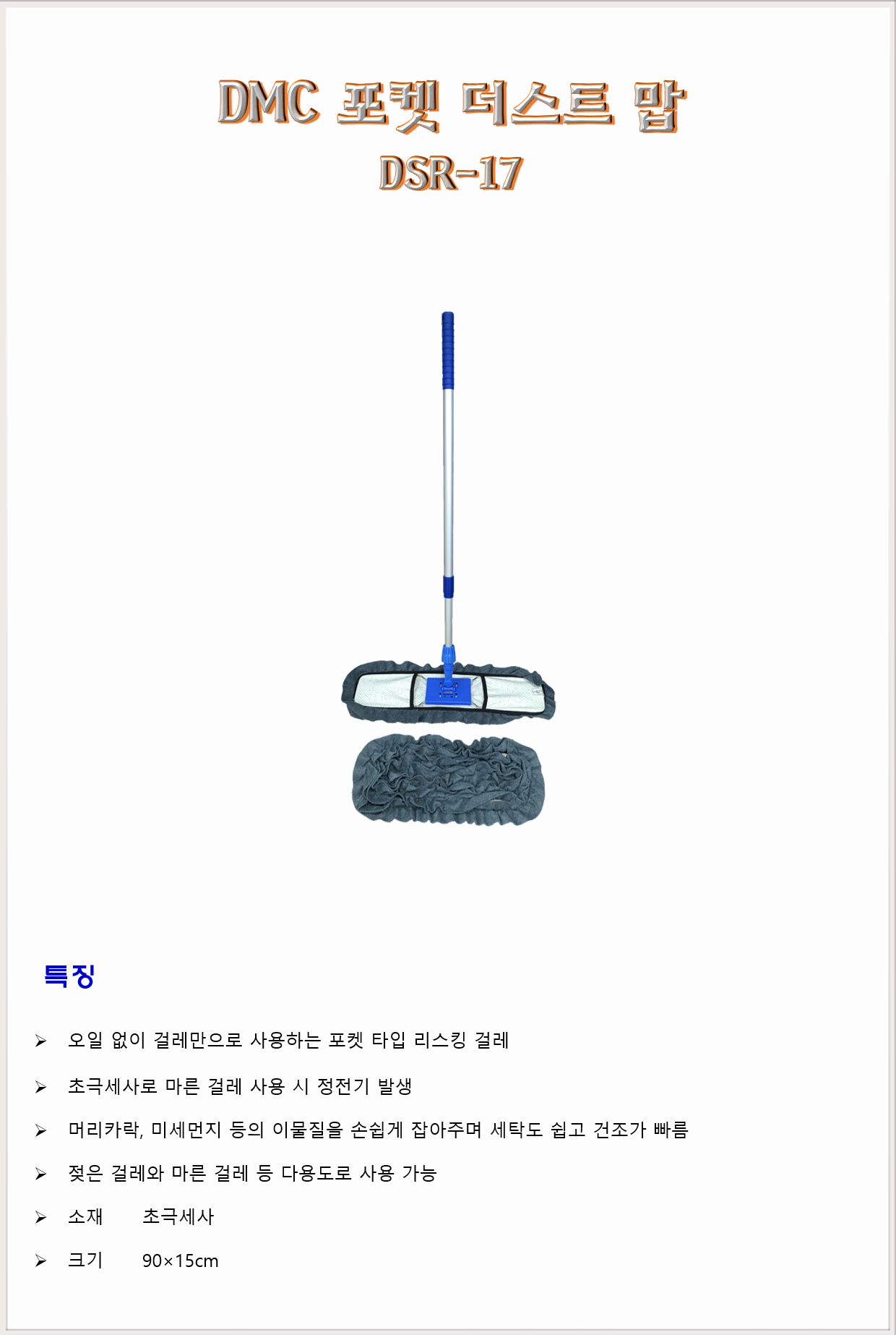 청소도구 작업도구 걸레 밀대 바닥밀대 DMC 포켓 더스트 맙 DSR-17 45cm