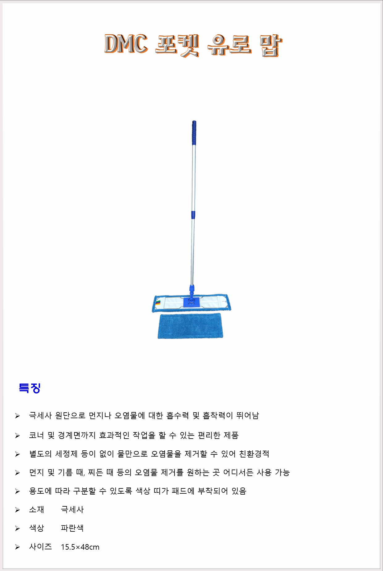 청소도구 작업도구 걸레 밀대 바닥밀대 DMC 포켓 유로 맙 48cm