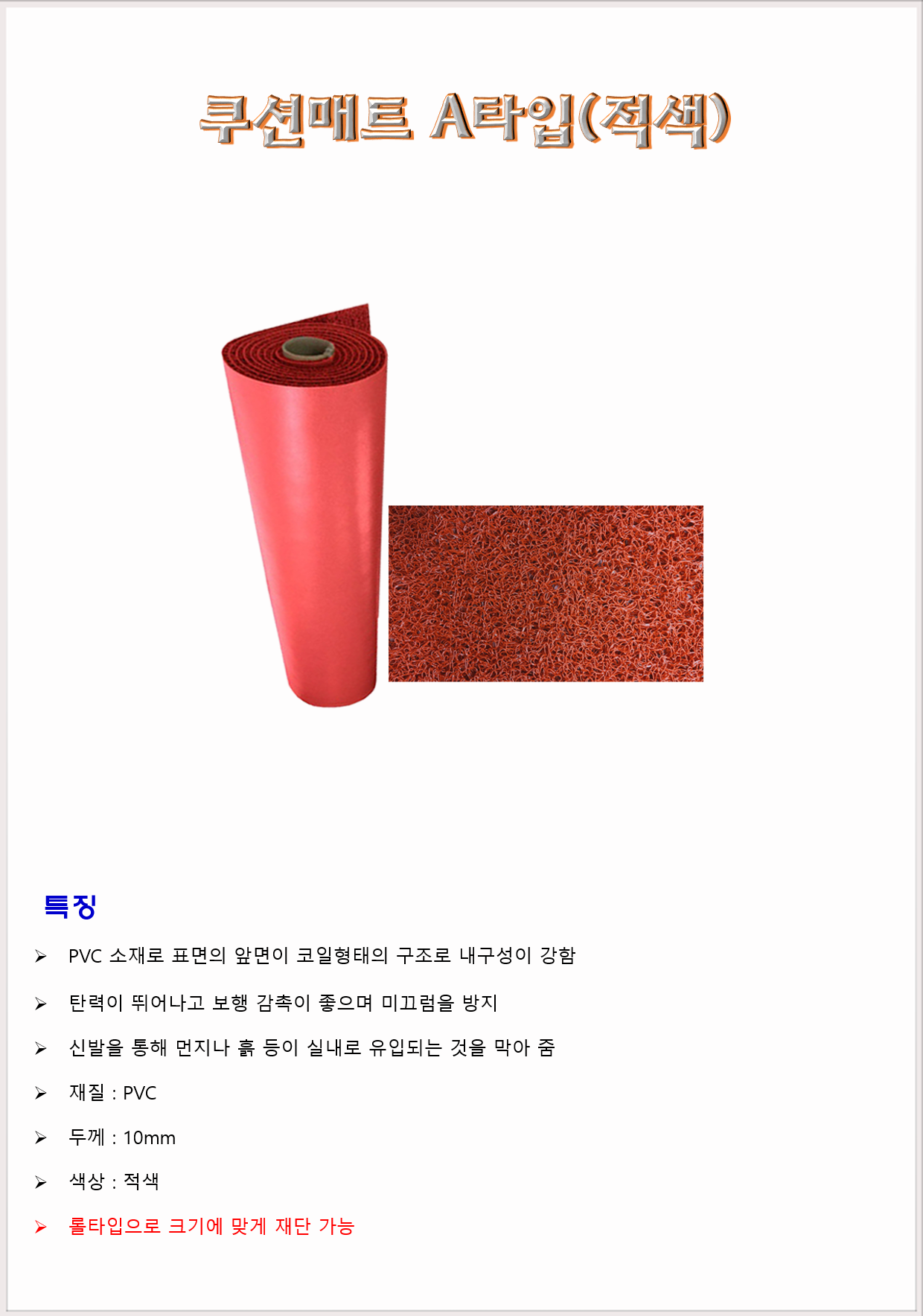 안전용품 메트 코일매트 쿠션매트 A타입(적색) 10mm(두께)