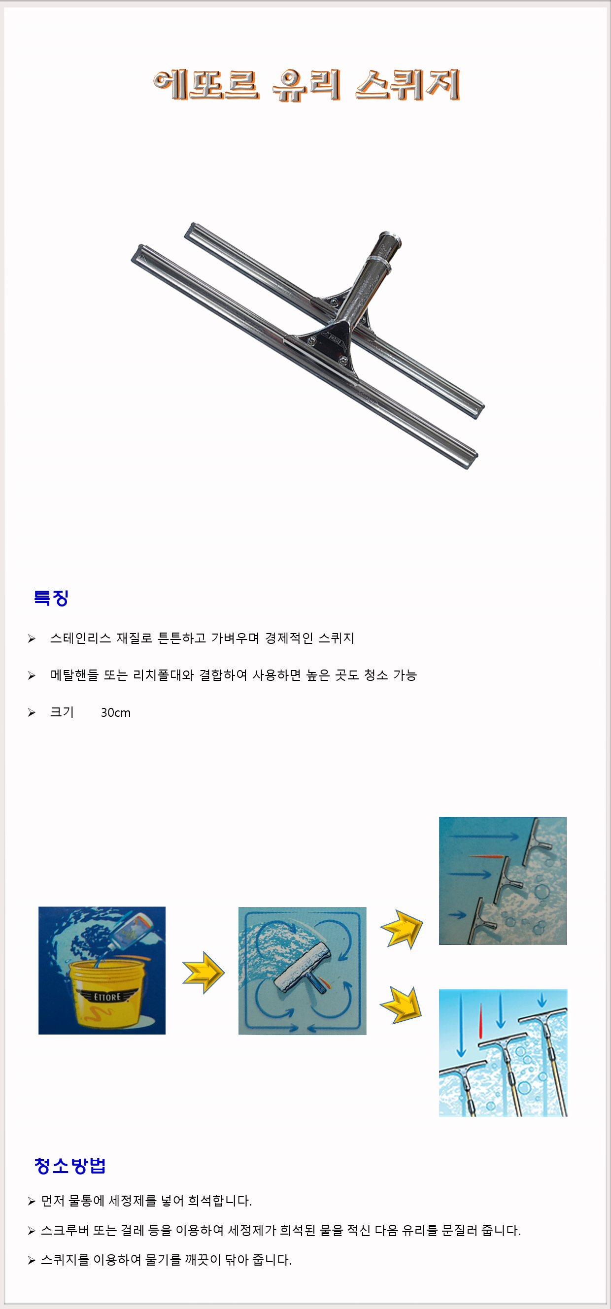 청소용품 유리창청소 에또르 스테인리스 스퀴지 30cm