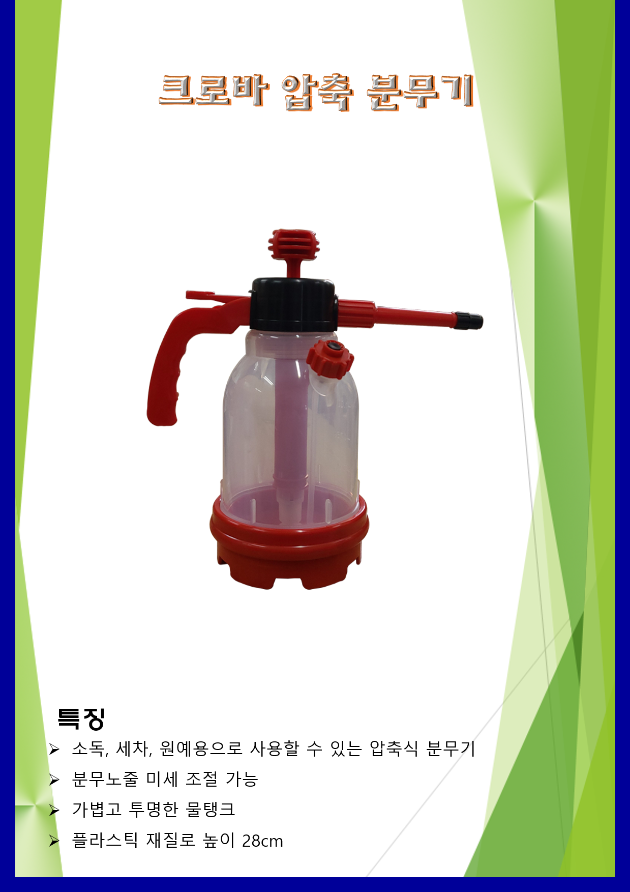 방역장비 수동식 분무기 크로바 압축 분무기 (1L/2L)