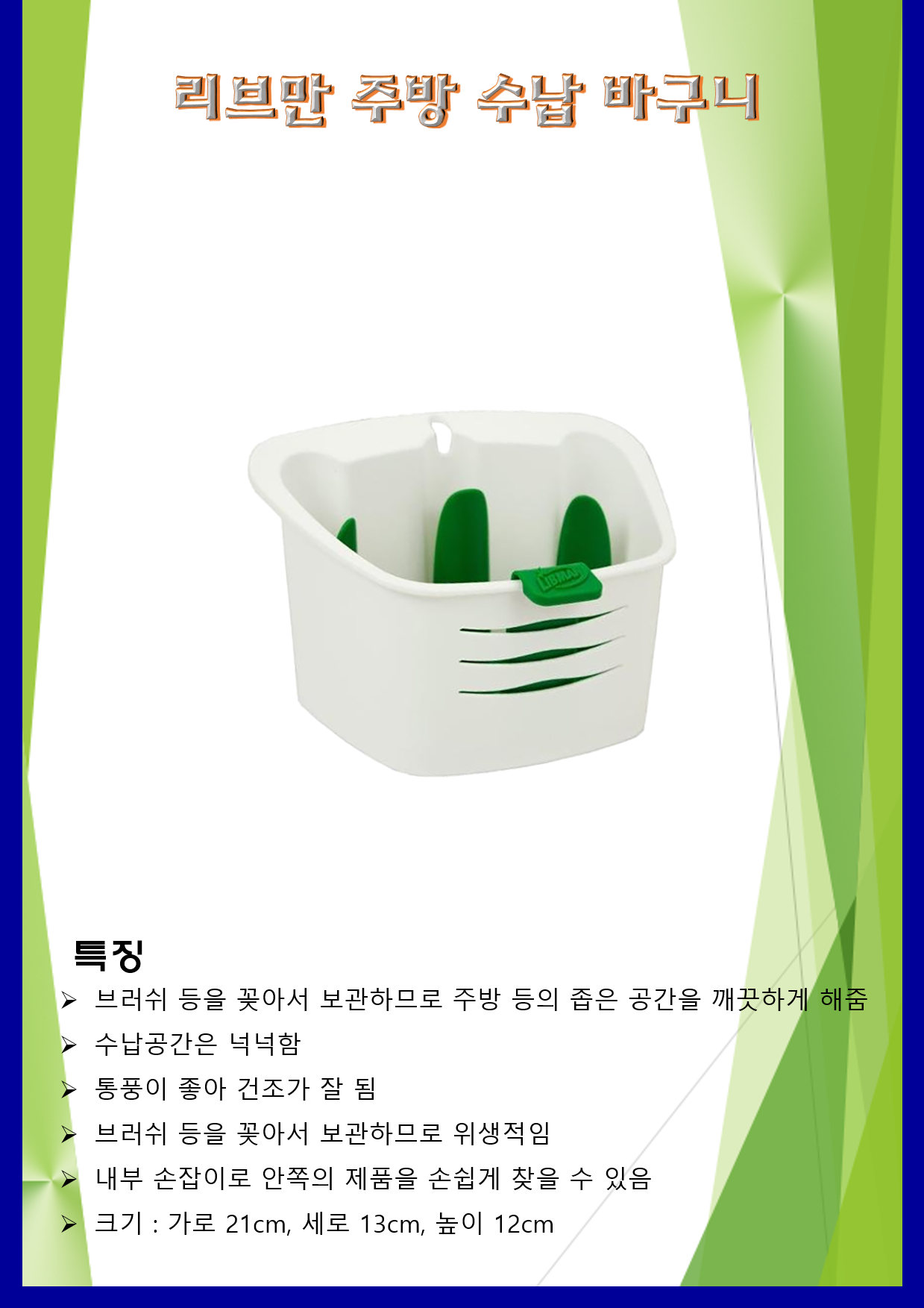 청소용품 수납 바구니 리브만 주방 수납 바구니 21×13×12cm