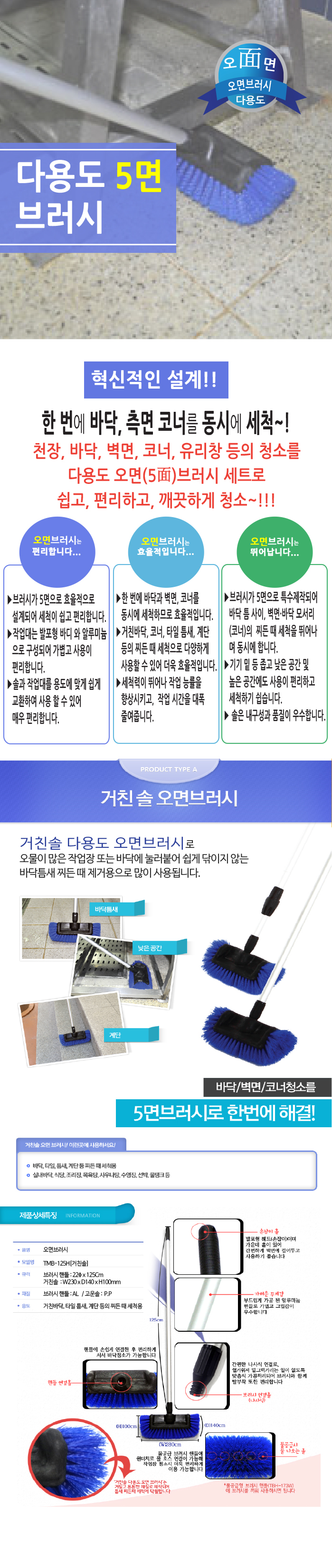 청소도구 솔 TMB-125H 다용도 5면 브러쉬 230×140×100mm(브러쉬) ⌀22×125cm(자루)