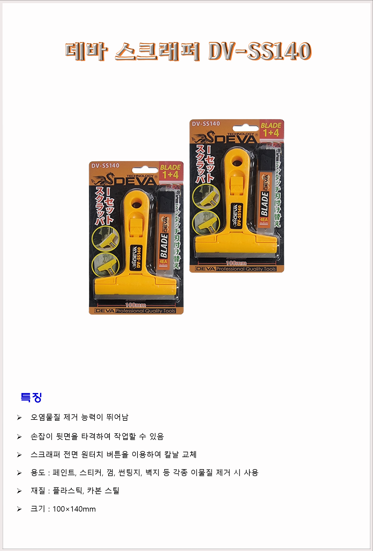 청소도구 작업도구 헤라 데바 스크레퍼 DV-SS140 100×140mm