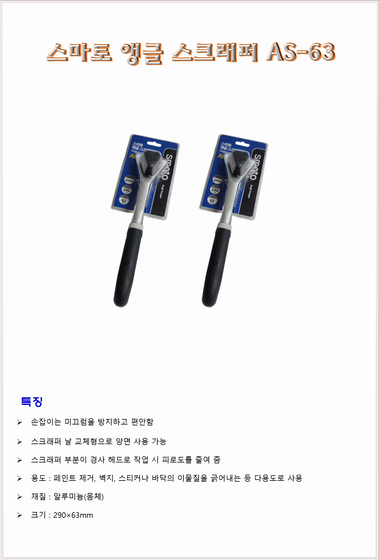청소도구 작업도구 헤라 스크래퍼 스마토 앵글스크래퍼 AS-63 290×63mm