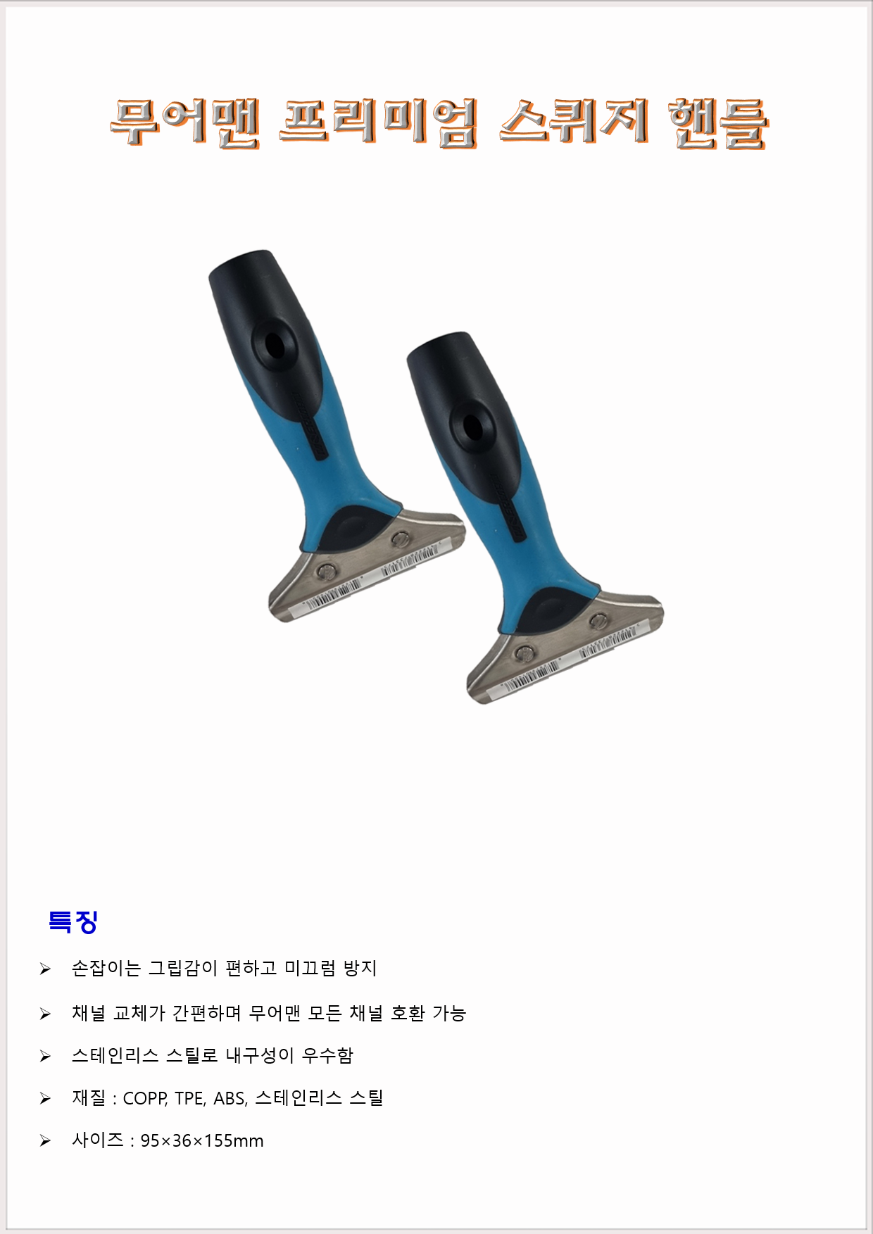 청소도구 스퀴지 유리스퀴지 핸들 무어맨 프리미엄 스퀴지핸들 95×36×155mm