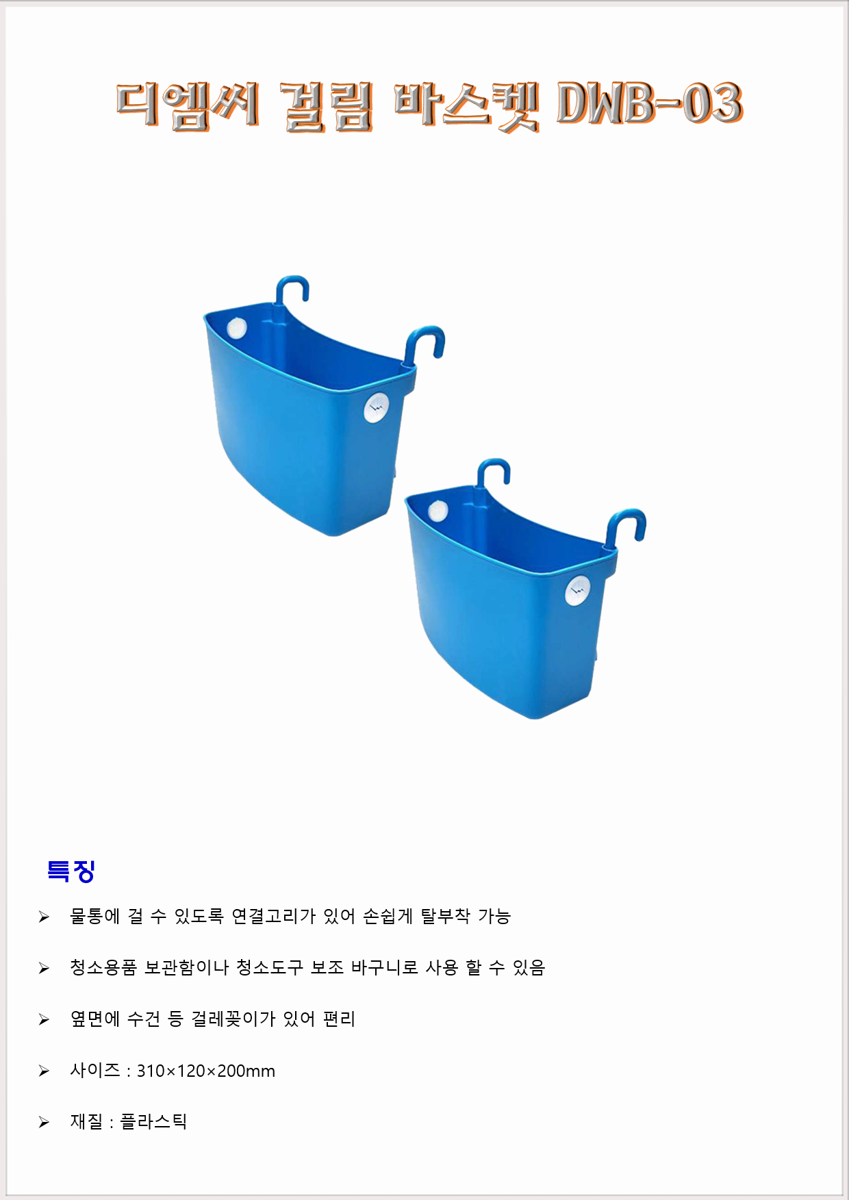 청소도구 물통 다용도 걸리미 디엠씨 걸림 바스켓 DWB-03 310×120×200mm