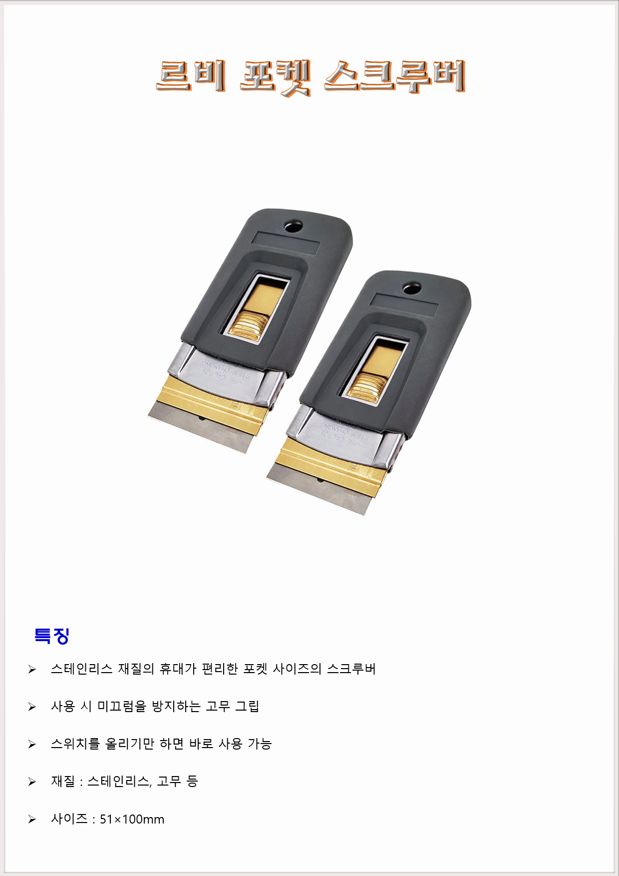 청소도구 스크래퍼 헤라 르비 포켓 스크루버 51×100mm