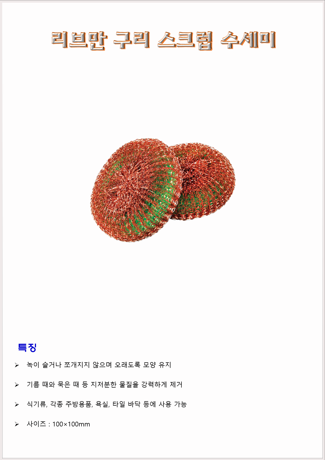 청소도구 솔 리브만 구리 스크럽 수세미 100×100mm