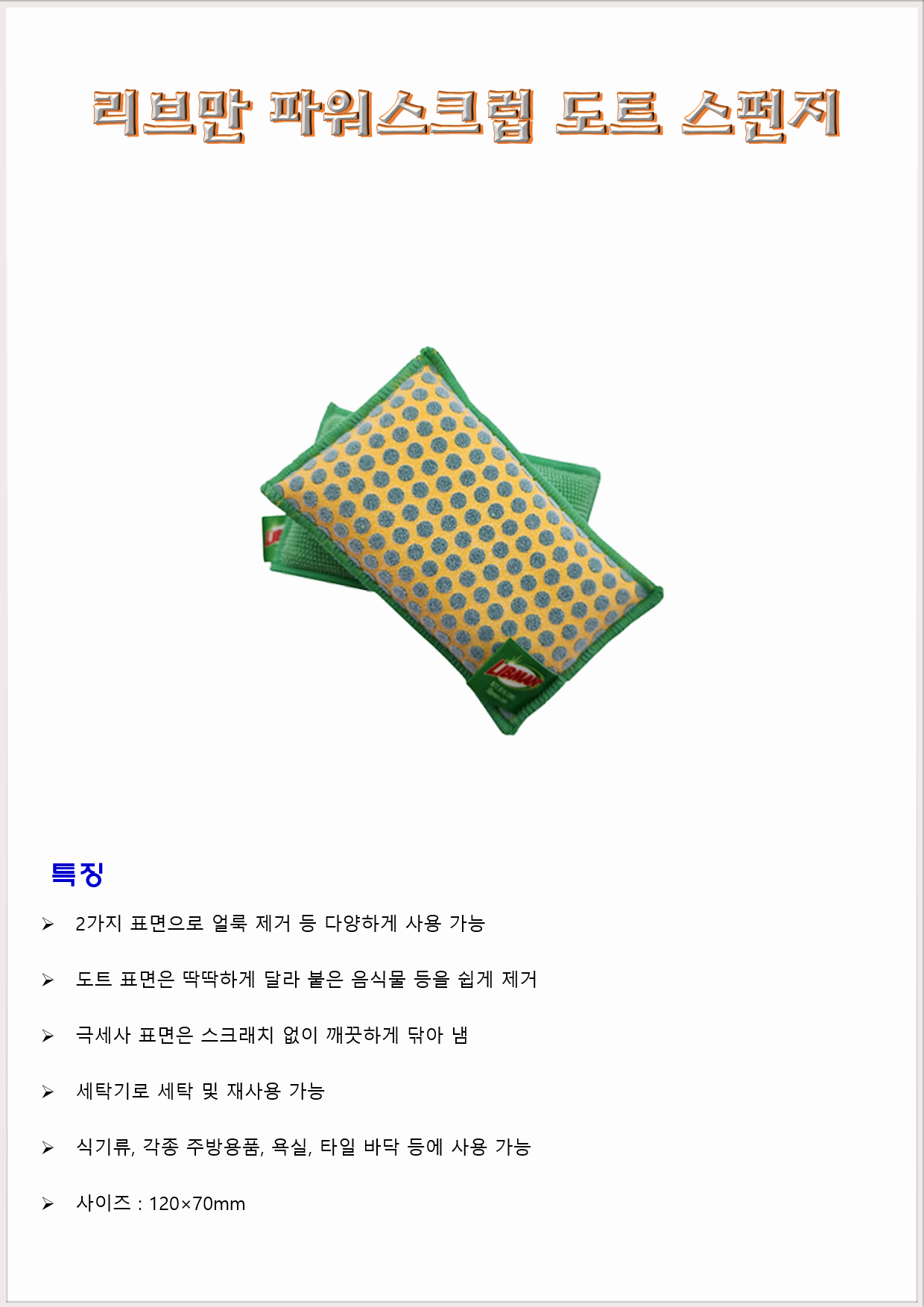 청소도구 수세미 솔 리브만 파워스크럽 도트 스펀지 120×70mm