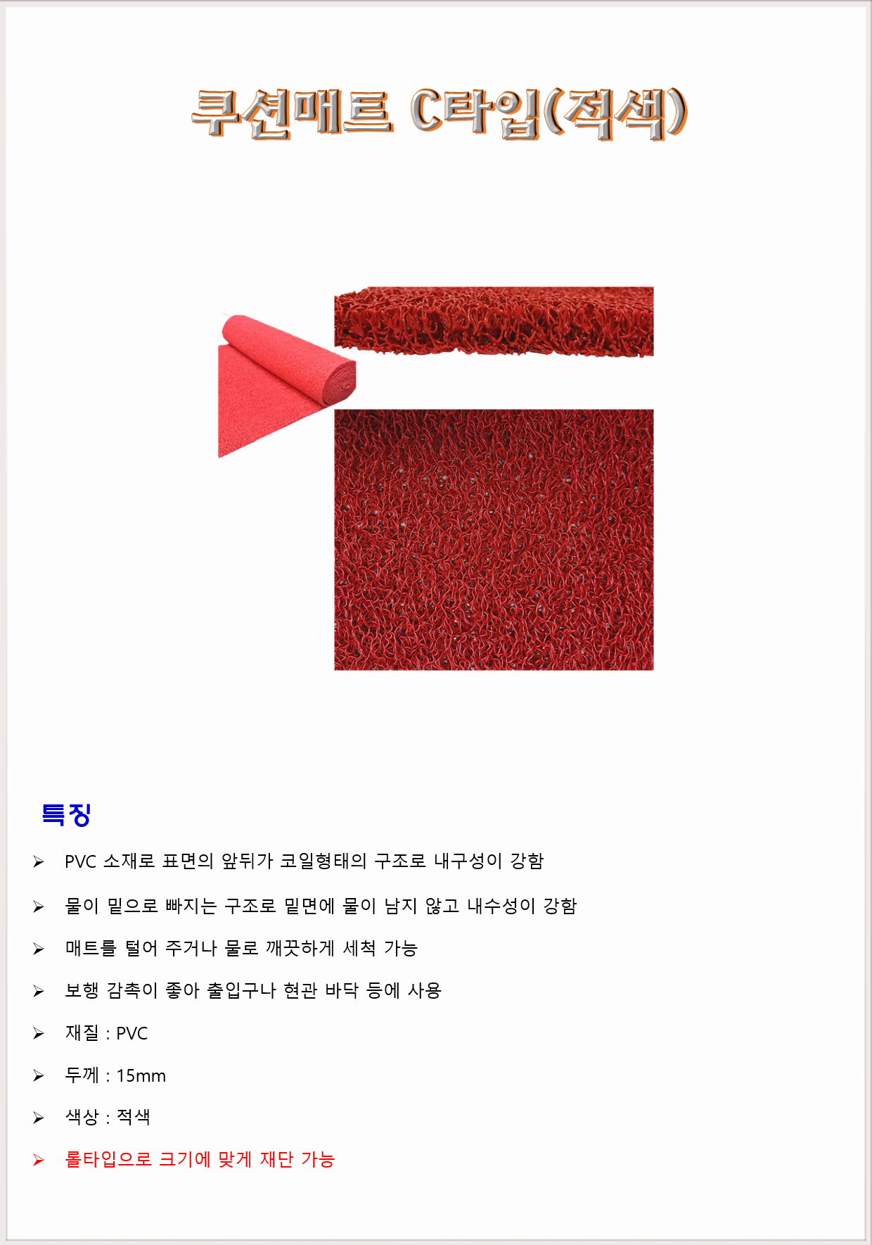 안전용품 메트 코일매트 쿠션매트 C타입(적색) 15mm(두께)