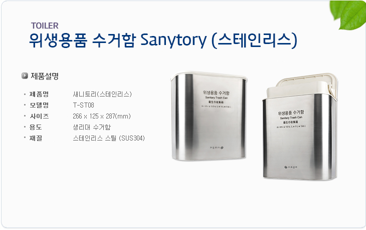토일러 위생용품수거함(스텐레스) T-ST08 266×125×287mm