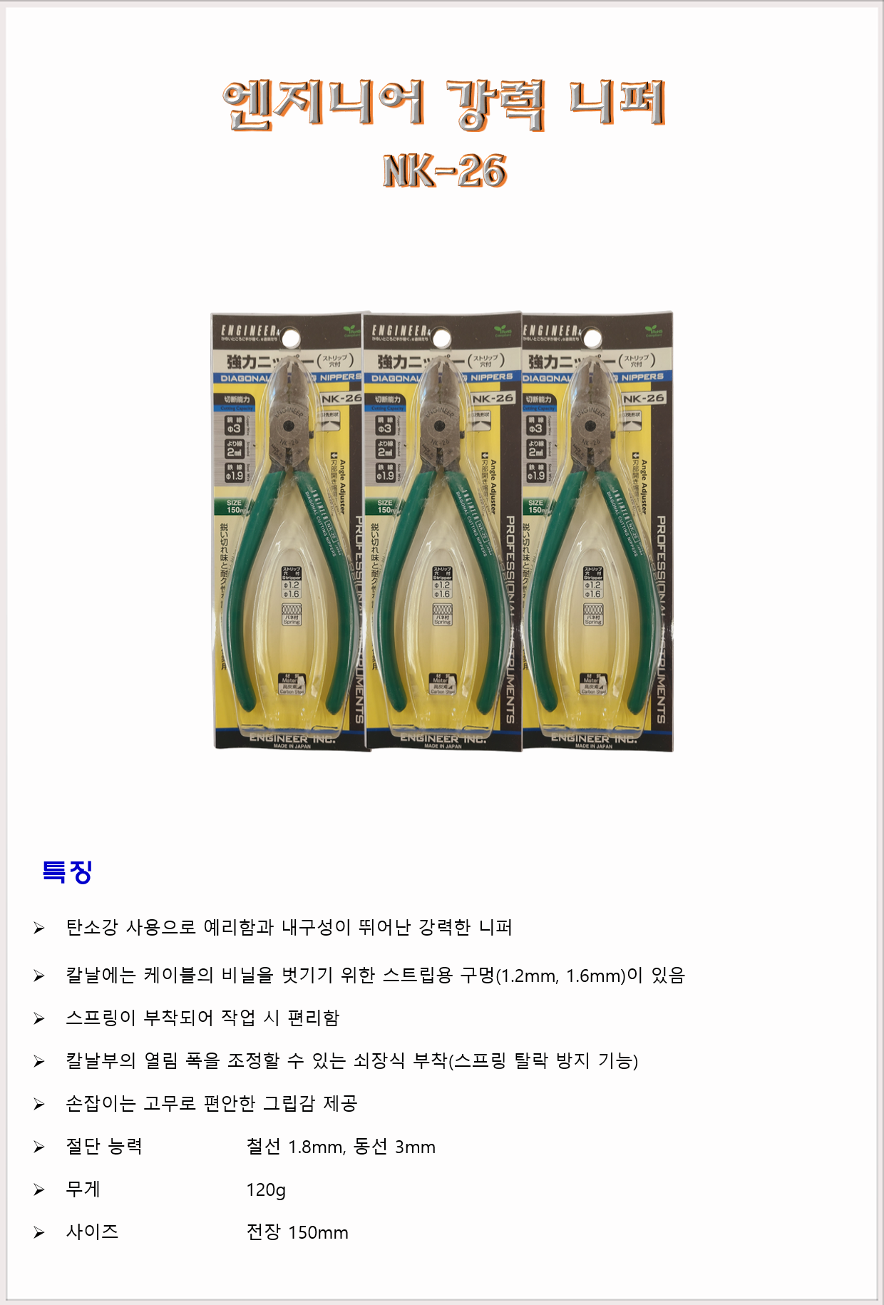 공구 수공구 엔지니어 강력 니퍼 NK-26 150mm