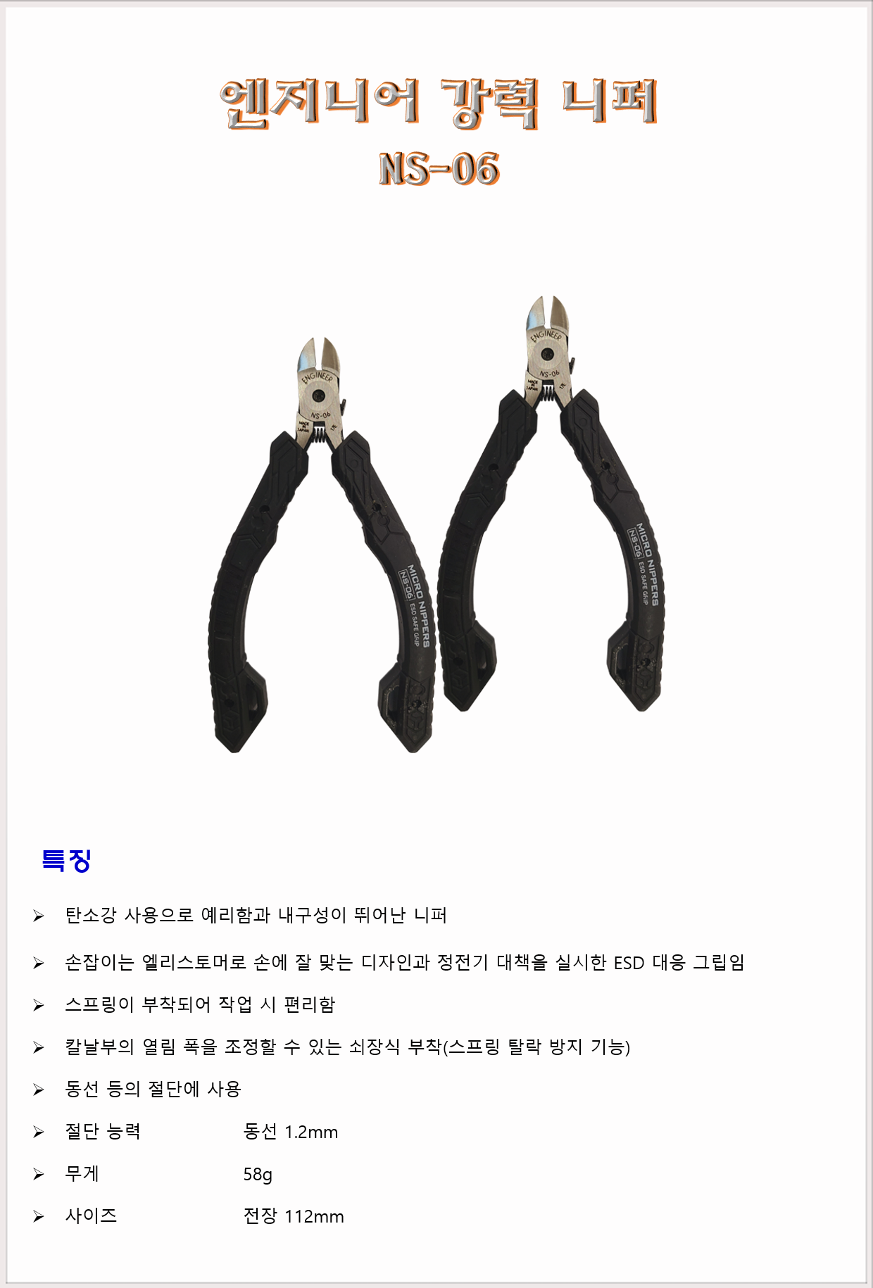 공구 수공구 엔지니어 강력 니퍼 NS-06 112mm