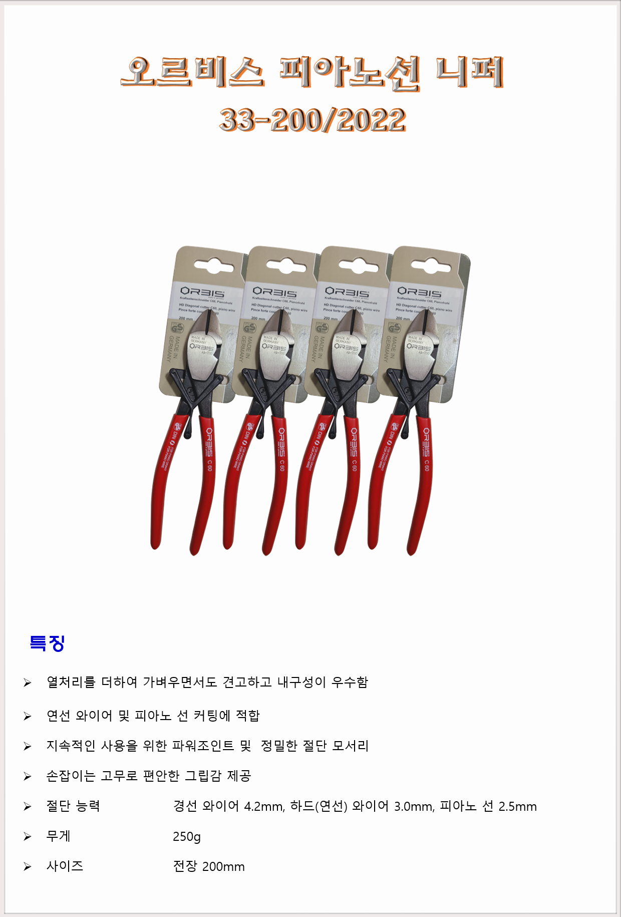 공구 수공구 오르비스 피아노선 니퍼 33-200/2022 200mm