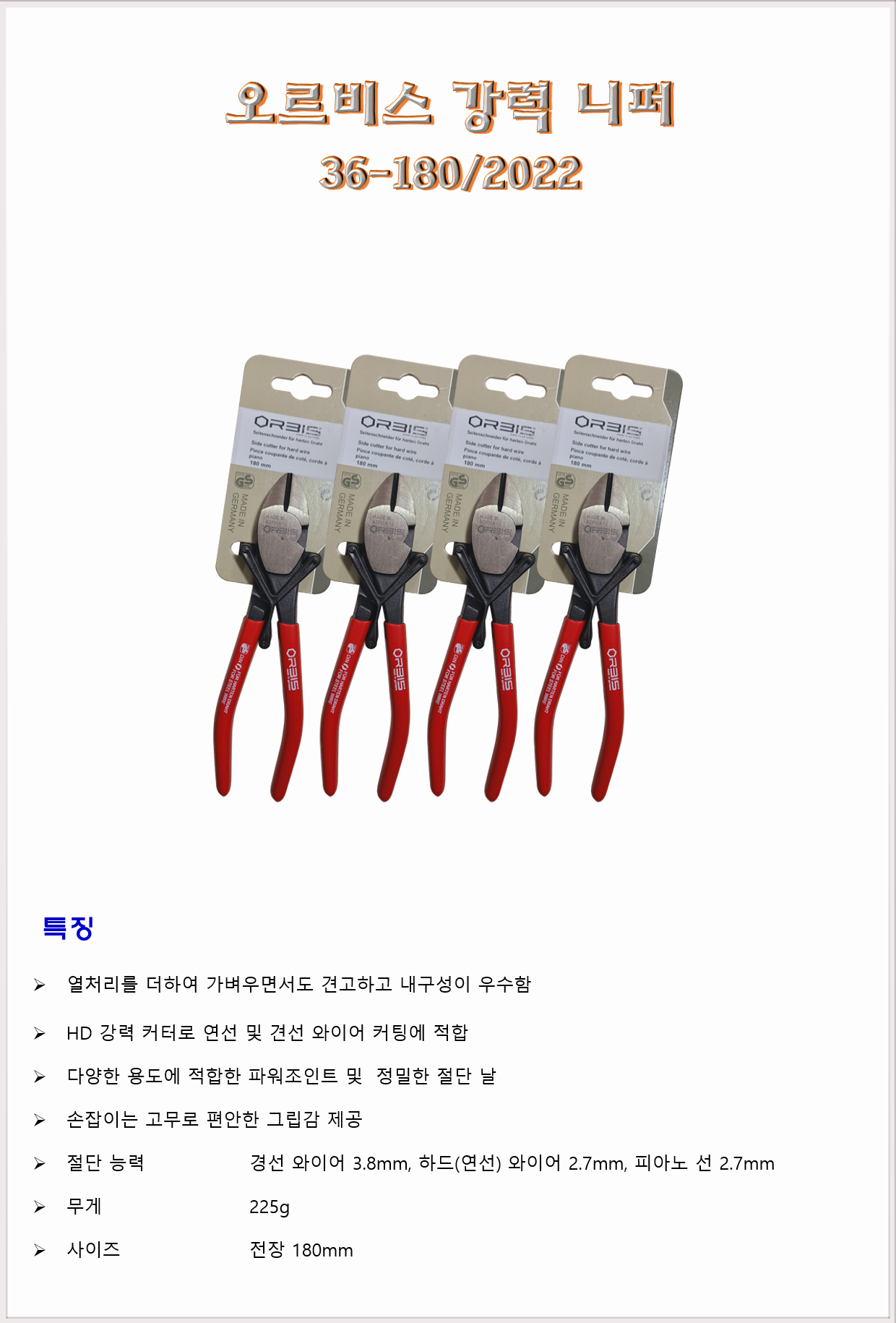 공구 수공구 오르비스 강력 니퍼 36-180/2022 180mm