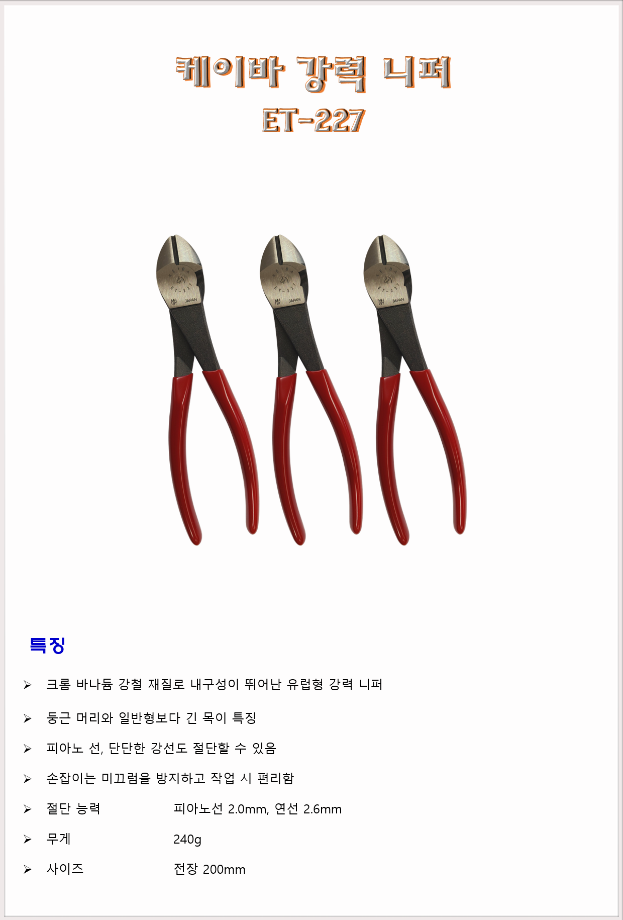 공구 수공구 케이바 강력 니퍼 ET-227 200mm