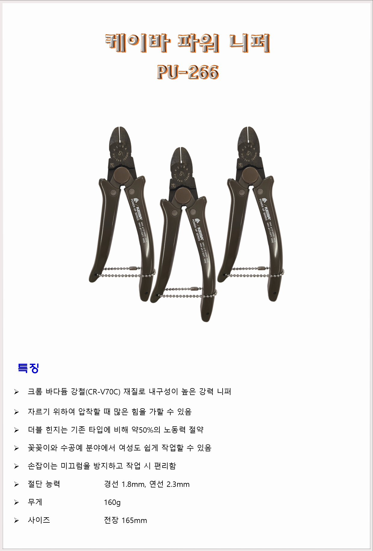 공구 수공구 케이바 파워 니퍼 PU-266 165mm