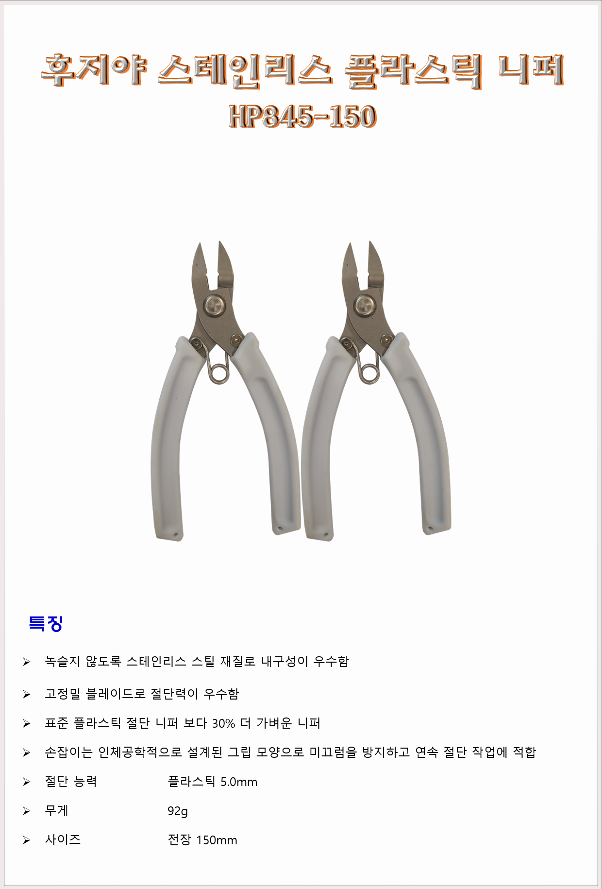 공구 수공구 후지야 스테인리스 플라스틱 니퍼 HP845-150 150mm