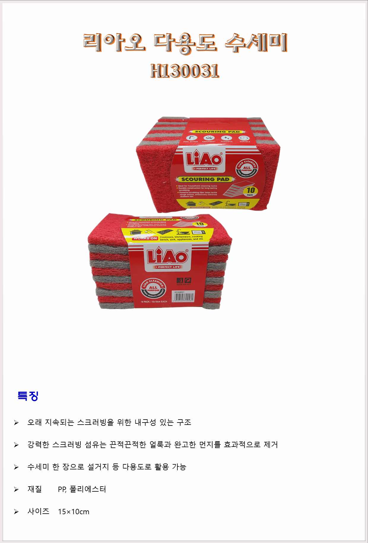 청소도구 스크러빙 리아오 다용도 수세미 H130031 15×10cm