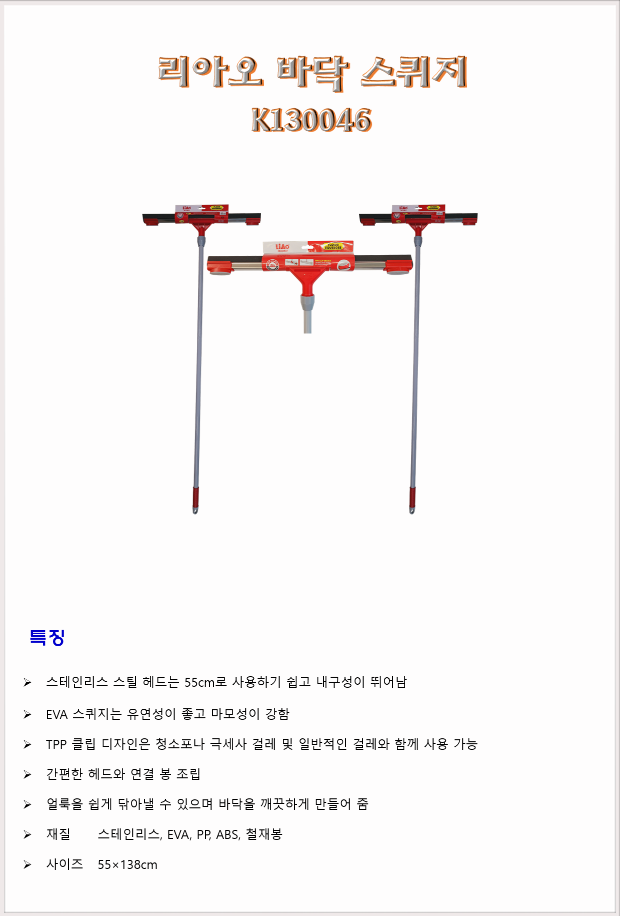 청소도구 스퀴즈 바닥스퀴지 리아오 바닥 스퀴지 K130046 55×138cm