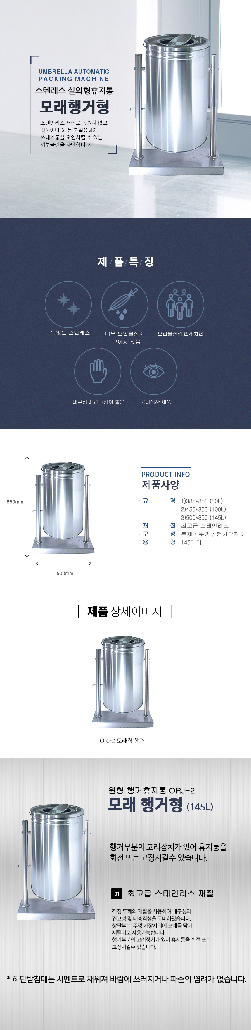 청소도구 쓰레기통 스텐레스 모래행거형 실외휴지통 145L