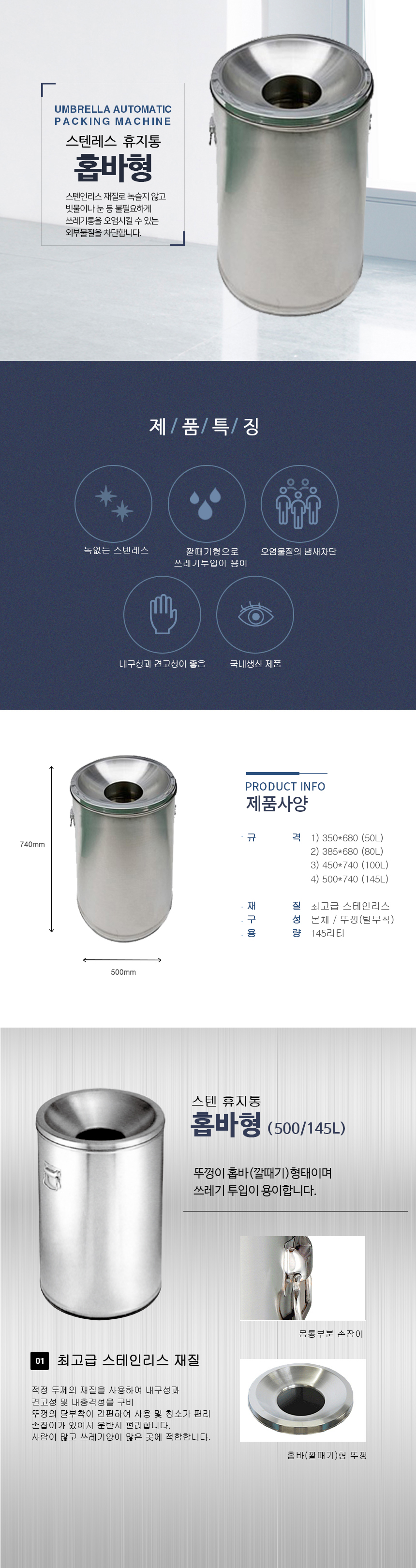 청소도구 쓰레기통 스텐레스 홉바형 휴지통 145L