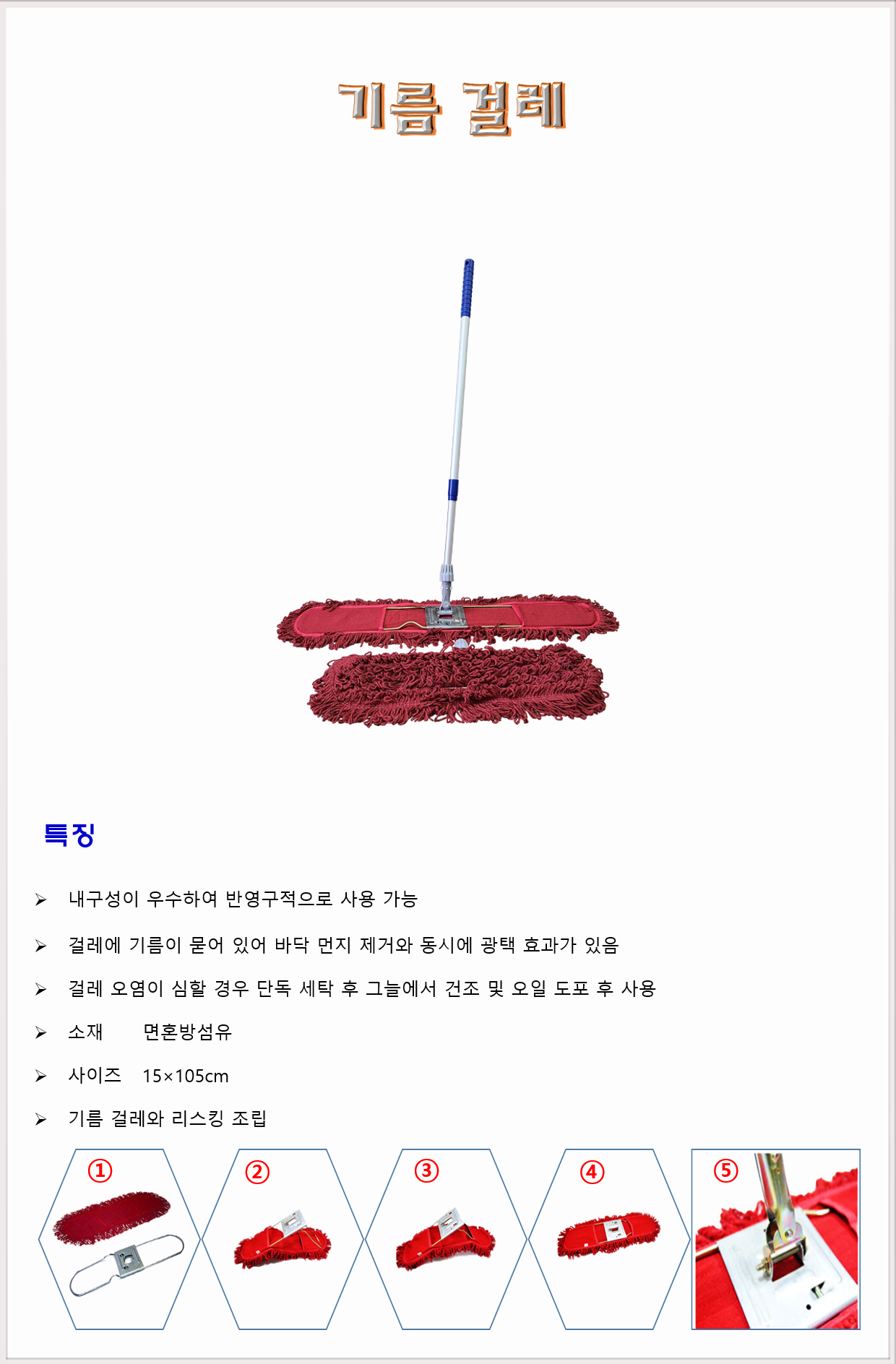 걸레에 기름이 묻어 있어 바닥 먼지 제거와 동시에 광택 효과가 있음