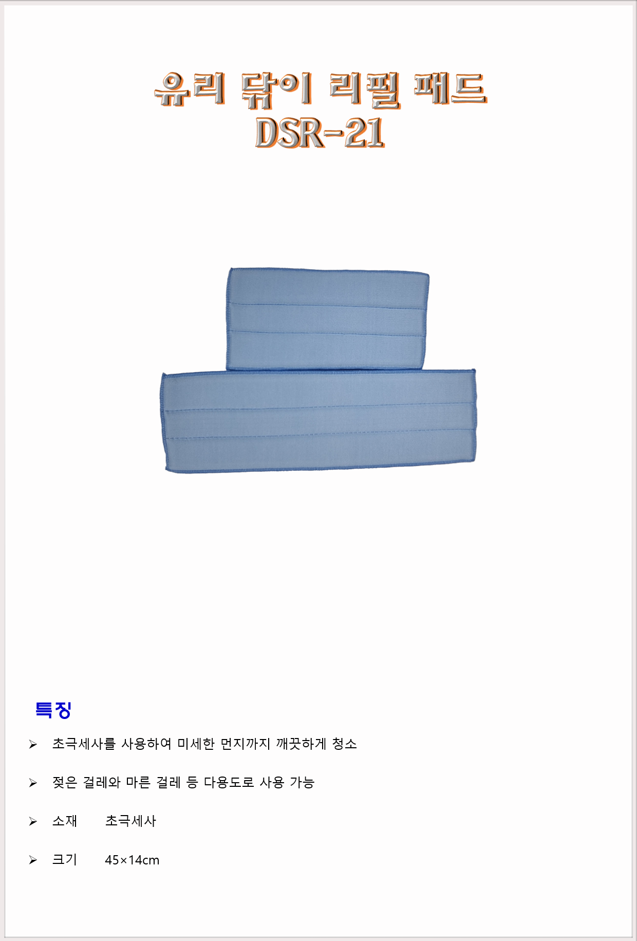 청소도구 작업도구 걸레 밀대 DMC 유리 닦이 리필 패드 DSR-21 45cm