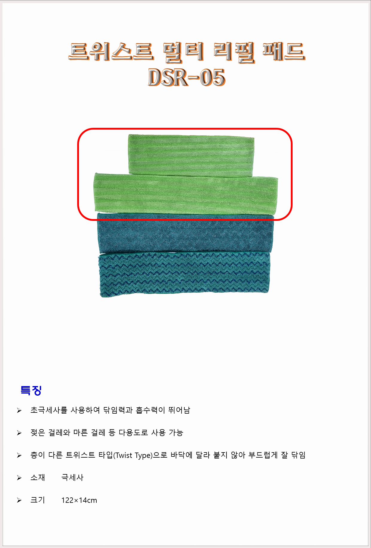 청소도구 작업도구 걸레 밀대 바닥밀대 DMC 트위스트 멀티 리필 패드 DSR-05 122cm