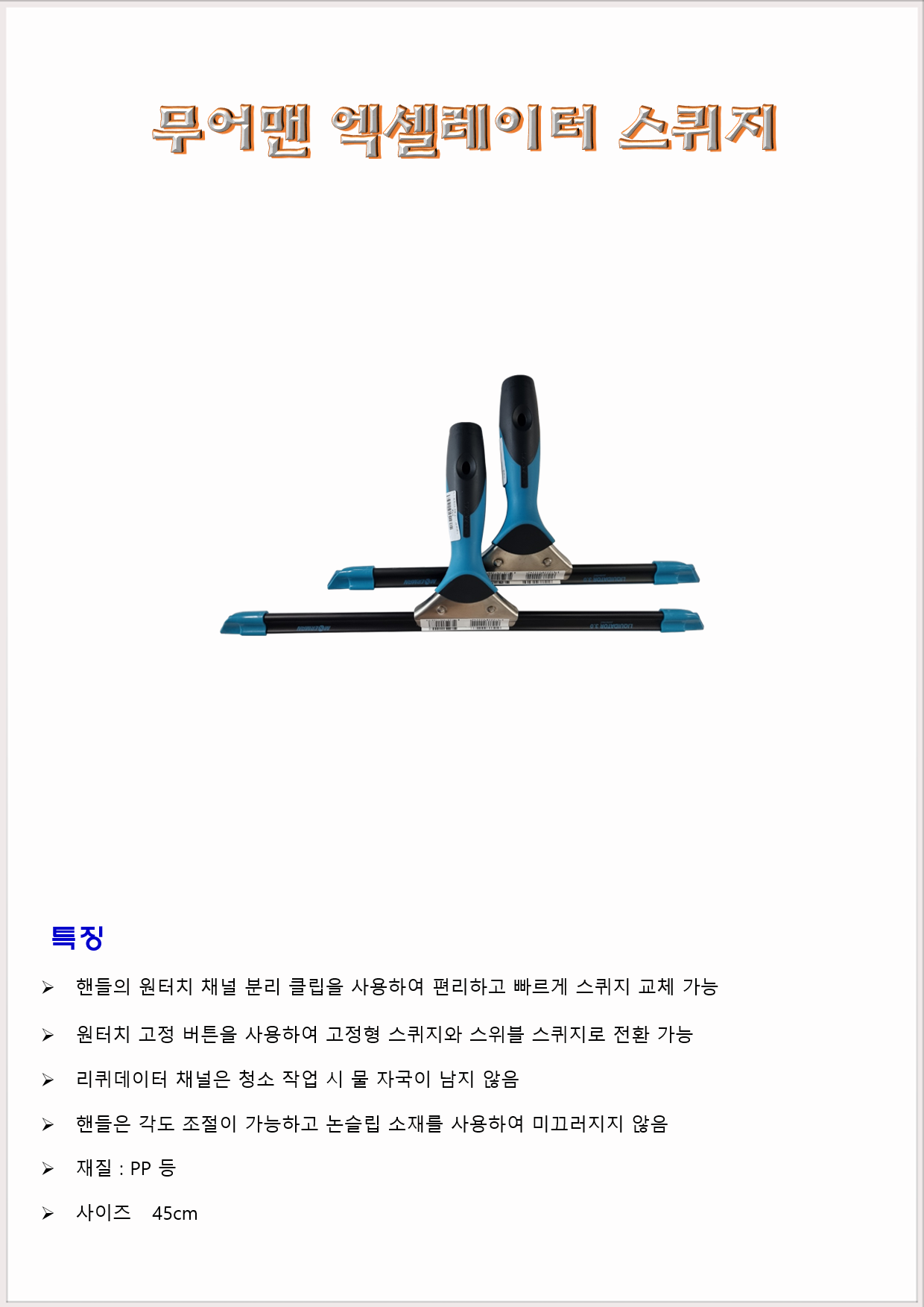 청소도구 유리스퀴지 무어맨 엑셀레이터 스퀴지 45cm