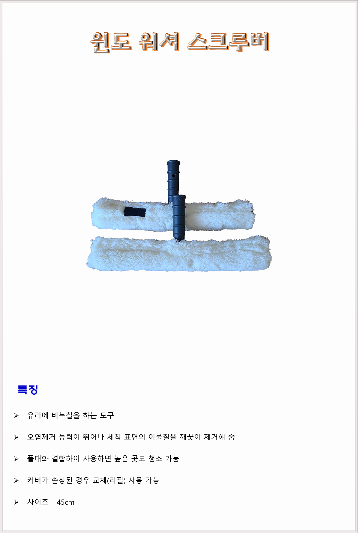 청소도구 작업도구 스퀴지 윈도 워셔 스크루버 45cm