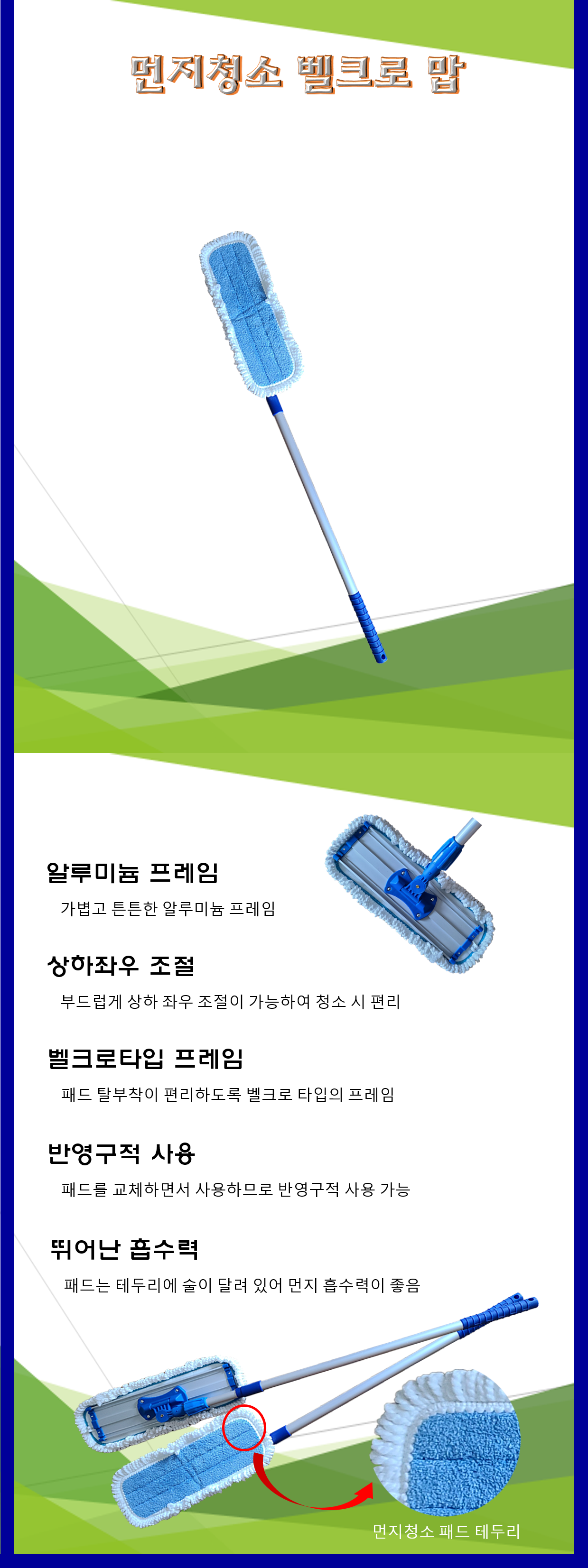 청소도구 작업도구 걸레 밀대 바닥밀대 먼지청소 벨크로 맙 60cm