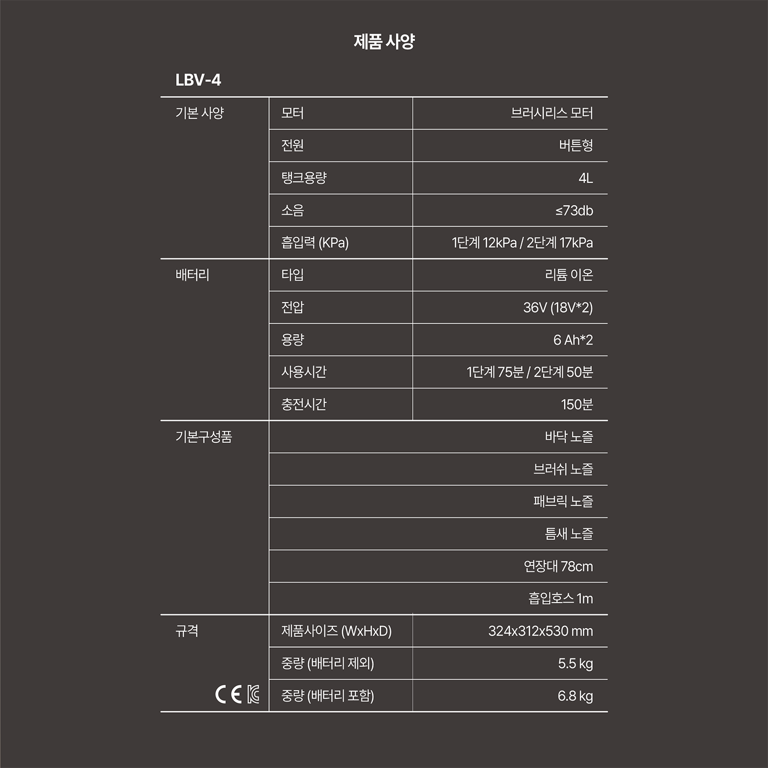 청소장비 진공청소기 충전청소기 레칸 무선 배낭형 청소기 LBV-4