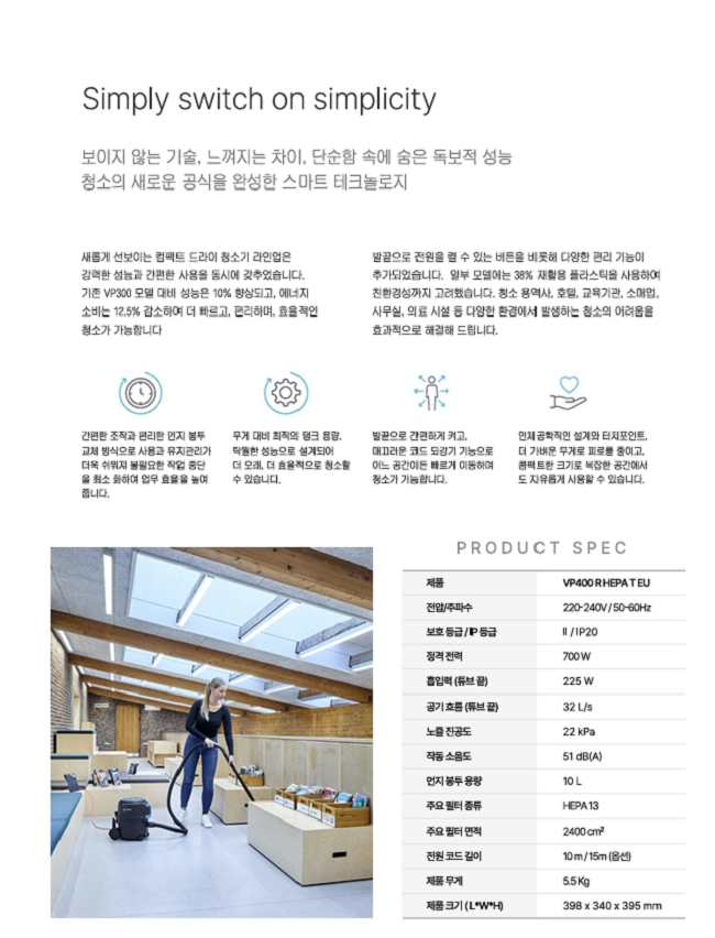 청소장비 진공청소기 건식 청소기 Nilfist VP400 R T EU